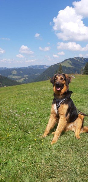 Buddy hat die langen Wanderungen mit uns sehr genossen und konnte das erste Mal in seinem
