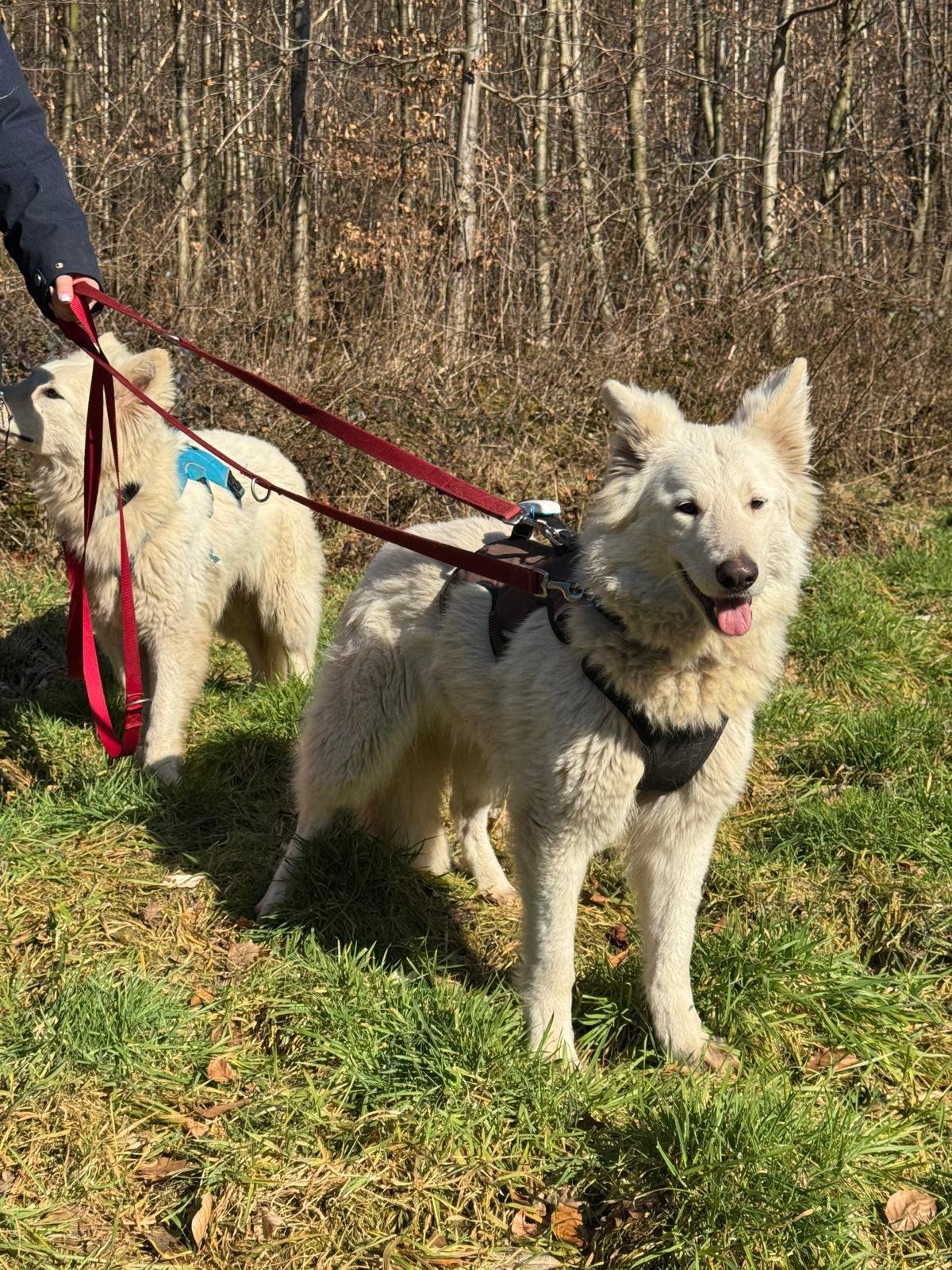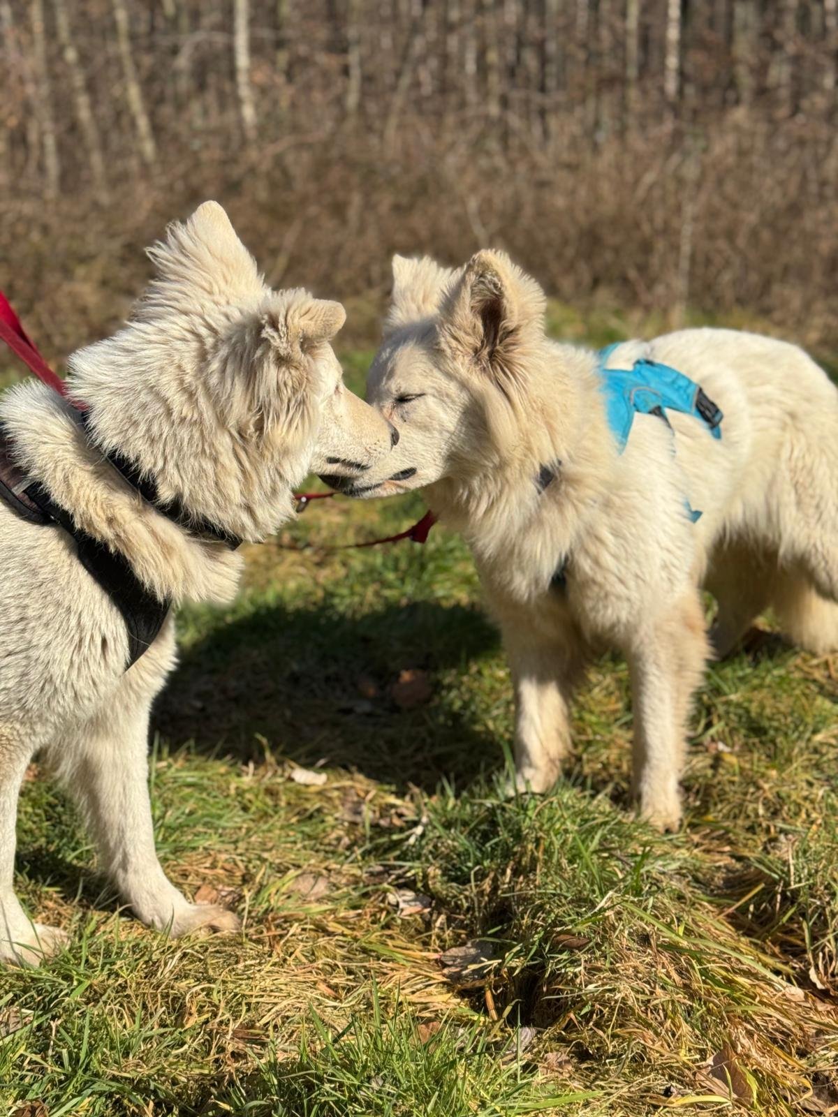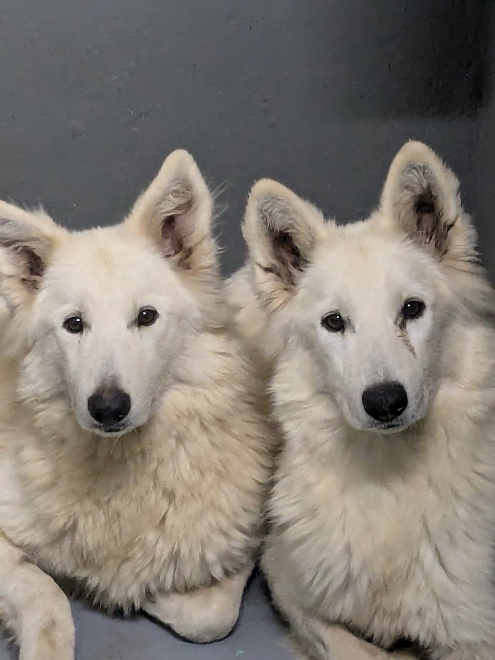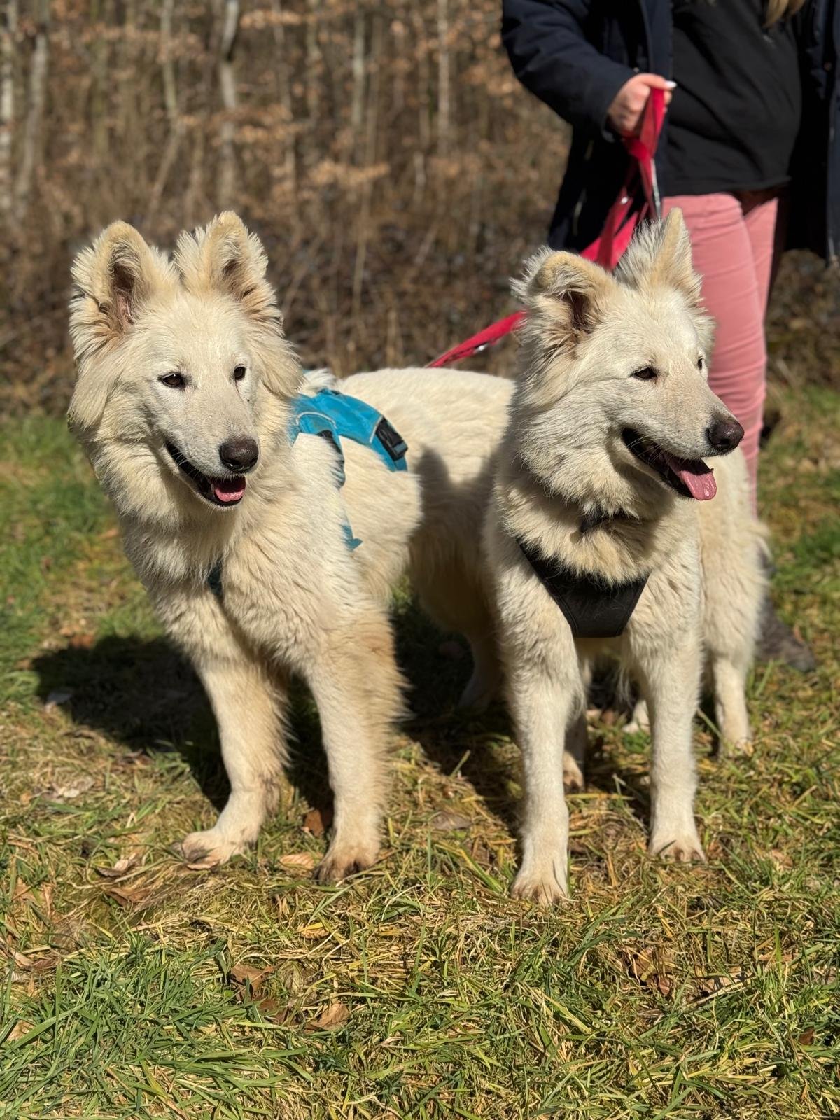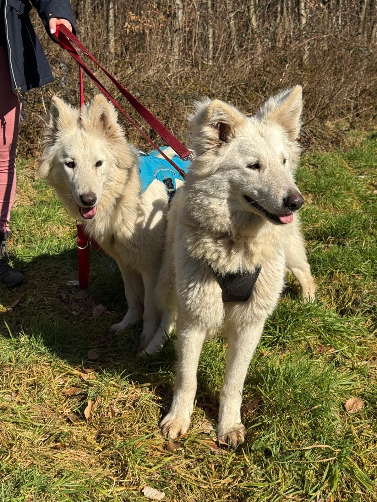 Die Schwestern Anuk und Gina sind weiße Schweizer Schäferhündinnen, die im Jahr 2020 geboren wurden und ihr Leben bis jetzt gemeinsam verbracht haben. Beide sind noch ängstlich und können auch noch nicht an der Leine laufen. Wir trainieren regelmäßig mit ihnen und hoffen, sie dann in zwei oder drei Monaten vermitteln zu können. Interessenten dürfen sich aber gerne schon melden!