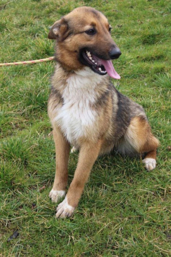 Diese hübsche Hündin hat sicherlich nicht nur Gutes vom Menschen in ihrem Leben kennengelernt: sie ist scheu, vorsichtig. Aber von uns lässt sie sich nach einem Moment streicheln, ist dabei sehr ruhig. Dann ist sie aufgetaut und sehr lieb bei uns. An der Leine läuft sie geduckt, hier ist Training nötig. Bei uns wollte sie – nachdem sie einmal lag – einfach nicht mehr aufstehen, sondern beobachtete nur die Umgebung.